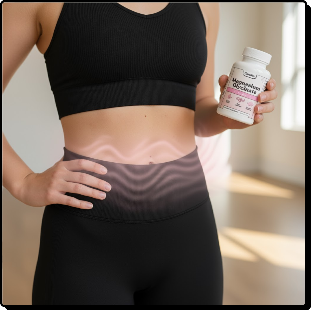 Magnesium flushes excess estrogen, drains water retention, and calms the cortisol that makes PMS bloating worse.