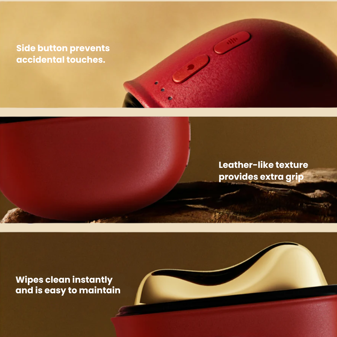 The LED tri-level power status indicator will light up individually when the Gua Sha is on to show its charge level in increments of 33%.