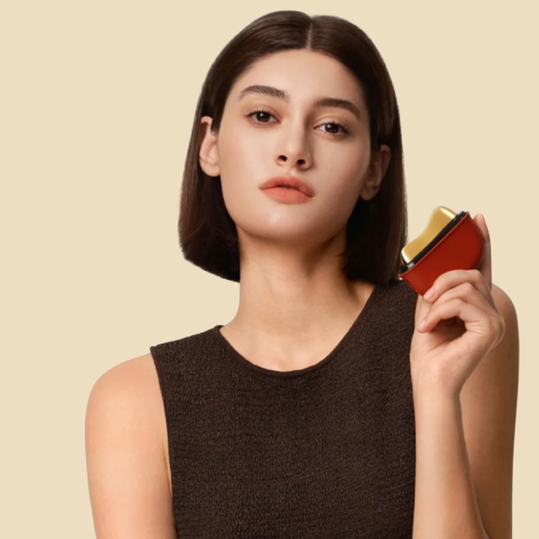 Designed to give you an effortless tone, Use your 3 in 1 features to your advantage with red light therapy to reduce puffiness, gua sha massage to drain, and vibrating heat to soothe!